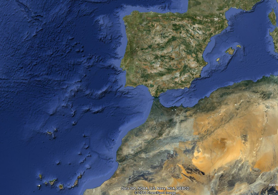 as Illas Canarias, situado no océano Atlántico, ao oeste da costa africana.